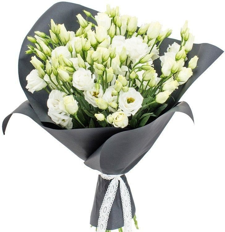 Изысканный букет из белой эустомы в оригинальной, модной упаковке порадует вас своей утонченностью, легкостью и нежностью. Чудесная эустома, а другое название - лизиантус или ирландская роза является символом счастья и гармонии, искренней любви и верности, восхищения и уважения, поэтому такой букет станет отличным дополнением любого праздника, торжества и романтического свидания.